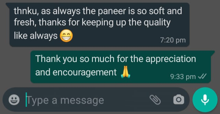 We take immense pride in our paneer delivery process. Unlike other packaged paneer vendors who might store their products for an extended duration before delivery, we ensure that the paneer is prepared, packed, and dispatched within hours of its creation. This dedication guarantees that the paneer you receive at your doorstep the very next morning is exceptionally fresh.